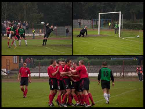W 50 min doszło do kontrowersyjnej sytuacji w polu karnym NKS-u, a Szatkowski pokazał, że nie tylko jest piłkarzem, ale i dobrym aktorem. Symulując faul P. Józefkiewicza wywalczył dla swojej ekipy rzut karny. Sędzia Niemczyk bez whania pokazał na jedenasty metr boiska. Kibice nie mogli pogodzić się z decyzją arbitra. Pewnym egzekutorem karnego okazał się Krzysztoporski i wyrównał stan meczu. W 76 min. goście zdobyli gola na wagę 3 pkt, a pięknym strzałem zza pola karnego tuż przy słupku popisał się Grolik. Nerwowo zrobiło się w 88 min., kiedy to pilkę z autu chciał wyrzucić P. Józefkiewicz, który był szarpany i odepchnięty przez Kapinosa - gracza, który opuścił boisko w 46 min. Nerwy puściły graczom jak i trenerom. Kapinos ujrzał czerwoną kartkę i musiał udać się do szatni, podobnie jak trener NKS-u K. Gnacy, któremu pusciły nerwy.