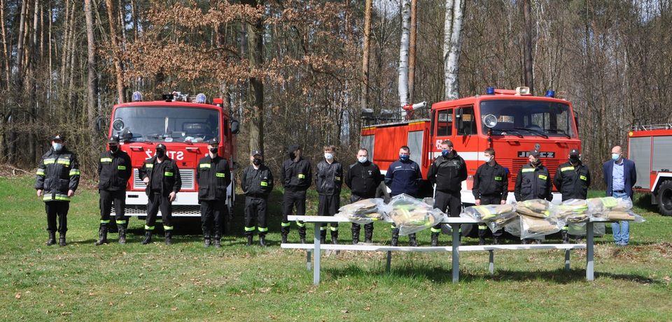 Strażacy z lokalnych jednostek Ochotniczych Straży Pożarnych mogą korzystać z profesjonalnych kombinezonów.