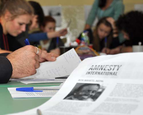 Szkolna grupa Amnesty International z opiekunem p. Przemysławem Paradowskim chciałaby podziękować wszystkim, którzy przybyli do Ogólniaka w te grudniowe, zimne popołudnie, aby swoim podpisem pod własnoręcznie napisanym listem, przyczynić się do uwolnienia więźniów sumienia. Dziękujemy za wsparcie członkom Klubu Europejskiego działającego przy Gimnazjum nr 2 w Namysłowie i ich opiekunowi p.Włodzimierzowi Putowskiemu, p. Arturowi Włodarczykowi – radnemu Rady Miejskiej, p. Ryszardowi Wilczyńskiemu – wojewodzie opolskiemu, p. Dariuszowi Karbowiakowi, przybyłym uczniom Zespołu Szkół Mechanicznych i Rolniczych w Namysłowie, studentom, mieszkańcom Namysłowa oraz uczniom I LO w Namysłowie, którzy przyłączyli się do tej niezwykłej międzynarodowej akcji i walczyli w obronie praw człowieka.