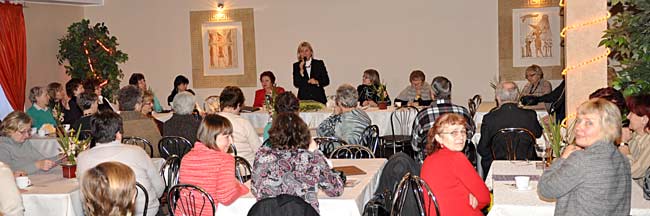 Wykład odbył się w kawiarni Inka, która licznie wypełniona była słuchaczami Uniwersytetu Trzeciego Wieku oraz członkami i sympatykami SLD oraz Stowarzyszenia Aktywnych Kobiet. Wśród publiczności zauważyć można było eks-starostę Andrzeja Spóra i radną Barbarę Leszczyńską.