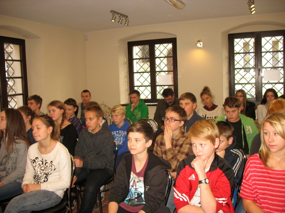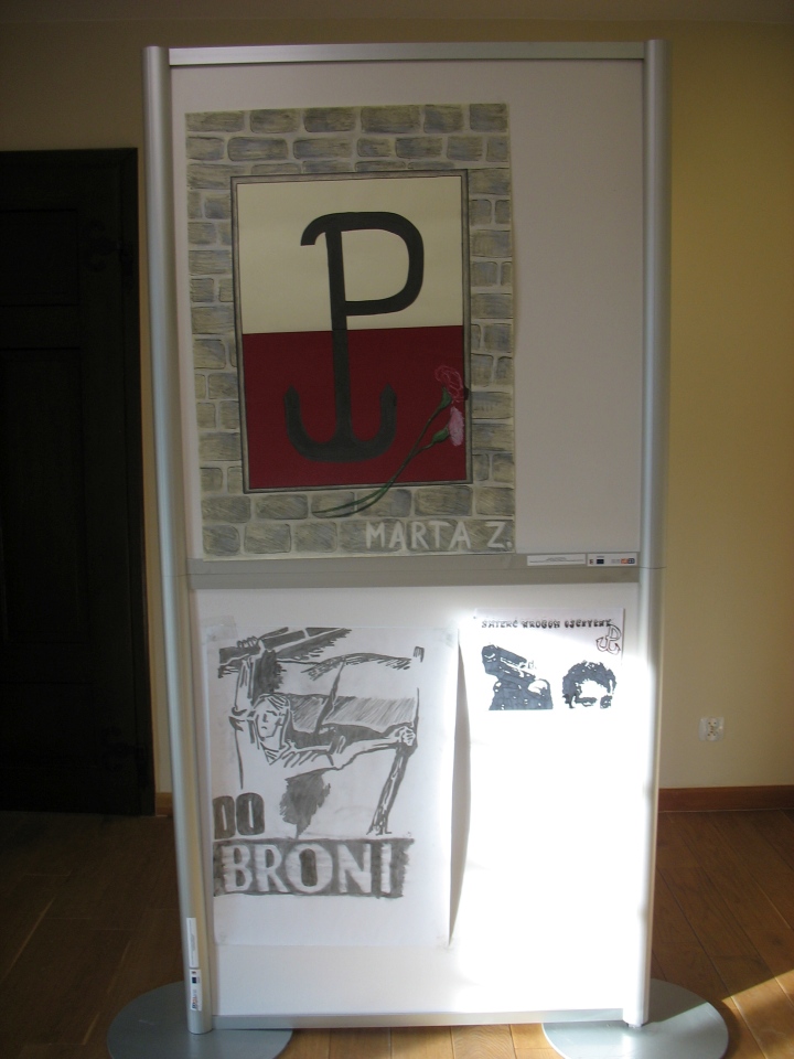 Uczniowie mieli możliwość obejrzenia prezentacji multimedialnej poświęconej żołnierzom Armii Krajowej. W trakcie spotkania, lekcji muzealnej, rozstrzygnęliśmy konkurs na wykonanie prac artystycznych w temacie: „Szlakiem Armii Krajowej: