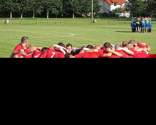 Początek sobotniego spotkania był nudny, obie ekipy grały słabo i nie potrafiły stworzyć sobie dogodnej okazji na zdobycie bramki. Gospodarze narzekali na kłopoty kadrowe, czerwono-czarnym brakowało zaś precyzji w podaniach. W 27' Białoskórski chciał zaskoczyć Kuleszkę oddając strzał z 18 metra, futbolówka sprawiła trochę problemu naszemu golkiperowi, który ratował się wybiciem jej na rzut rożny. Pod koniec pierwszej częsci zaobserwować mogliśmy przewagę naszych piłkarzy, lecz brakowało nam wykończenia akcji pod bramką Gawdonowicza. W 42' czerwono-czarni wychodzą na prowadzenie. Bonar dograł do znajdującego się w polu karnym M. Raszewskiego, a ten przy biernej postawie obrońcy zaskoczył Gawdonowicza strzałem w długi róg. Futbolówka zatrzepotałą w siatce! Minutę później przed szansą na podwyższenie wyniku stanął P.Pabiniak lecz jego strzał obronił golkiper Sparty. Tuż przed końcem tej części gry Kułaj kiksuje, ale z prezentu nie potrafił skorzystać P. Pabiniak, który był oko w oko z Gawdonowiczem.