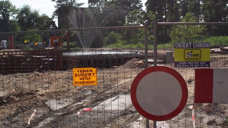 Budowa mostu jest zaawansowana. Wylewa się już żelbetową jezdnię mostu. Upał zmusza niemiecka firmę Groetz do zraszania świeżo wylanego betonu. Ma to zapobiec pękaniu konstrukcji.