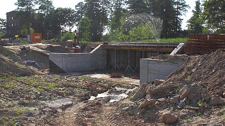 Nowy most robi wrażenie, ale koniec ze skaniem do wody na główkę - może i dobrze. Dno tuż za żelbetem wyłożone grubą warstwą głazów i wzmocnione grubymi palami. Zapowiada się w przyszłym roku niezłe miejsce do kąpieli. Z piaskiem jak na plaży i szumem mostowej kaskady:)
