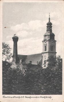 Na zewnątrz, w porównaniu z kościołem ewangelickim, niby niepozorny, ale wewnątrz jednak obszerniejszy niż jego protestancki brat. Ta niezwyczajna budowla rozwija swoją bryłę na osi północ-południe, gdy tymczasem "ewangelik" demonstruje swoją wielkość na odsłoniętej osi wschód-zachód. Przepyszną neobarokową budowlę poświęcono w 1907 roku. Wewnątrz imponują "marmurowe" i pastelowe sztukaterie, gzymsy, kolumny, pilastry.