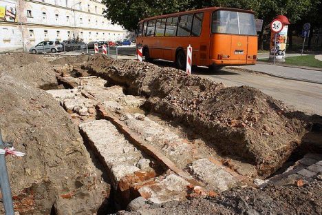 Fundamenty dwóch wież Bramy Wrocławskiej.