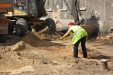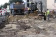 Właśnie specjalistyczna maszyna drogowa odsłoniła przy bramie wjazdowej Browaru fundamenty trzech zabytkowych budynków.