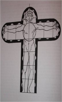 Według teologów średniowiecza świątynia chrześcijańska jest ciałem Boga-Człowieka: prezbiterium katedry przedstawia głowę Chrystusa, nawa główna – jego korpus, transept – ramiona, wielki ołtarz – serce, czyli „centrum życia”. [Interpretacja i grafika Francesco di Giorgio za Jean Hani "Symbolika światyni chrześcijańskiej"].