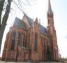 Fot. T. Dragan, Źródło: Regiopedia.pl. Smogorzów nie ma w ogóle dobrych fotografii w sieci. Ta też nie jest zbyt udana, taka robocza, fotoreporatażowa, ale najlepiej oddaje zróznicowanie bryły kościoła i jego poszczególne części. Licząc od lewej: prezbiterium z przybudówką zachrystii, pseudotransept tworzący ramiona krzyża, nawa ze strzelistym dachem (kąt nachylenia 40 stopni) mocno rozświetlona ostrołukowymi oknami z ceglanymi maswerkami i witrażami, wieża z małą kruchtą i portalem północnym z Św. Janem Chrzcicielem oraz Matką Boską ponad tympanonem portalu w ostrołukowej niszy. Niewidoczny jest oczywiście wyremontowany ostatnio zachodni portal główny z Podwyżonym Świętym Krzyżem.