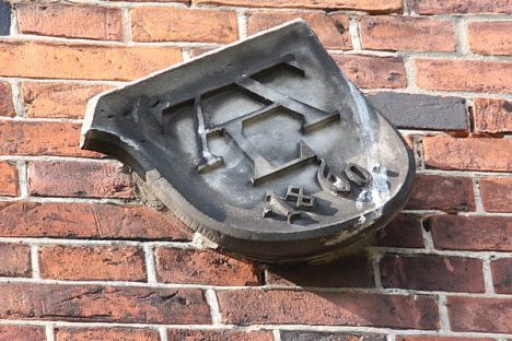 Prawa to herb biskupa Heinricha Foerstera, pomysłodawcy budowy nowej światyni i patrona z ramienia Kościoła Wrocławskiego.