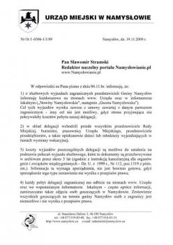 W swoim ostatnim wpisie blogowym opublikowałem kilka pytań, które zadałem urzędnikom namysłowskiego magistratu. Zainspirowały mnie dość skromne informacje o podjęciu partnerstwa z kolejną zagrabniczną miejscowością - tym razem rumuńską gminą Zagan. Ciekawy także byłem, jak w praktyce realizowana jest przez nasz urząd idea zapisana w ustawie o dostępie do informacji publicznej. Ustawa ta nakłada na określone podmioty, m.in. organy władzy publicznej oraz organy samorządów gospodarczych i zawodowych obowiązek udostępniania informacji dotyczących spraw publicznych.