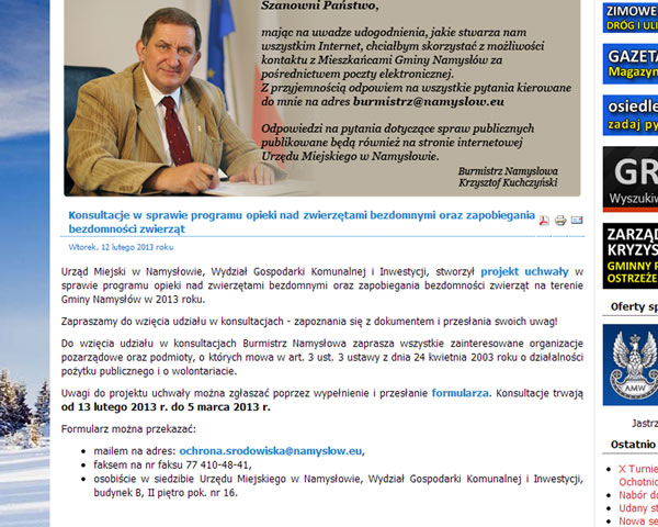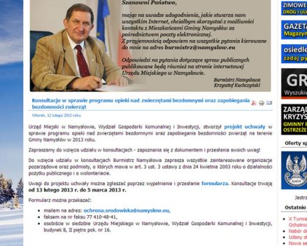 Dlaczego przytaczam te przykłady? W lutym tego roku burmistrz Namysłowa jak co roku ogłosił konsultacje w sprawie programu opieki nad zwierzętami bezdomnymi oraz zapobiegania bezdomności zwierząt. Przygotowanie i uchwalenie takiego programu to obowiązek władz gminy. Tylko co z niego wynika? W mojej opinii nic, bo problem bezdomnych, zagrażających mieszkańcom zwierząt jest ostatnim, którym władza się przejmuje. Człowiek to jedyne zwierzę które się rumieni. I jedyne, które ma za co - mawiał twórca Przygód Tomka Sawyera.