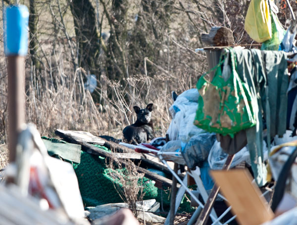 Miejsce to ma właściciela, pana K. Jak deklaruje, dzierżawi te kilka arów łąki i znosi tu przeróżne szmaty i rupiecie. W zasadzie to, nie wiedzieć czemu. Sypia na miejscu, we wraku starego samochodu, bo jak deklaruje, ma tu cieplej niż we własnym mieszkaniu w Namysłowie. A psy? Zaczęło się od dwóch własnych, a reszta jakoś sama się pojawiła. Wiele z nich podrzucili mu ludzie. Jak deklaruje, pan K. kocha psy ale teraz ma z nimi kłopot. Obecnie jest ich 14 ale bywało, że było ich dużo więcej. Skarży się, że nie daje rady ich wyżywić. Psy nie są sterylizowane, więc często pojawiają się młode. Co się z nimi dzieje? - pytam. Pan K. bez ogródek i spokojnym tonem opowiada, że topi je w pobliskim stawie. Czy potrzebuje pomocy z tymi psami? Jak najbardziej. Najchętniej oddałby je komuś, kto by się nimi zajął. Pytam, czy władze gminy mu pomagały. Tu zaczyna swoją opowieść o deklaracjach, jakie słyszał przez ostatnie lata. Czy coś zrobili? Nic - odpowiada. Na jednym z zebrań wiejskich około dwa lata temu straż miejska obiecywała ludziom, że gmina pomoże ogrodzić teren (sic!). Żeby chociaż chronić pieszych przed głodnymi psami. Do dzisiaj nie zrobiono nic.