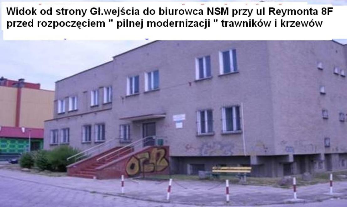 Nie trudno dostrzec efekty wątpliwego, kosztownego „ cichego planowania ”, rozrzutnego wydatkowania pieniędzy przez zarząd NSM na cele mniejszej wagi i pilności, przykładem tego jest utwardzenie samochodowego placu manewrowego, dla właścicieli prywatnych i wyodrębnionych garaży przy ulicy Reymonta, gdzie właścicielem jednego z nich jest członek Komisji Technicznej Rady Nadzorczej i zarazem zastępca Przewodniczącego Rady Nadzorczej NSM,( roboty nie były ujęte w żadnym planie remontów na 2013 rok, a za te prace wykonano bez uzyskania zgody mieszkańców, zapłacono z funduszu remontowego całej nieruchomości Nr.14 przy ul Reymonta, koszt wykonania robót wyniósł brutto ca 9 300,00 zł, oraz bezzasadne ułożenie nowej kostki betonowej przy wejściu do klatki schodowej, gdzie zamieszkuje Przewodniczący Osiedla Nr V. Ten z kolei w imieniu mieszkańców wnosił tylko o naprawę samej kratki do czyszczenia obuwia.