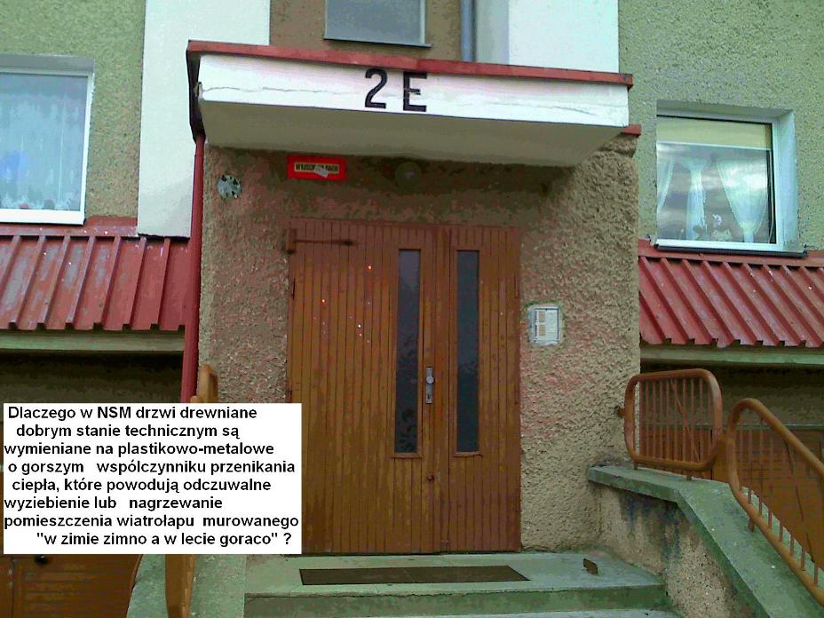 Szczególnym ewenementem z oczywistych powodów są w obecnym okresie niepotrzebnie wymieniane drzwi drewniane w dobrym stanie technicznym, na nowe „ estetyczne” ale o niższym współczynniku przenikania ciepła (na dodatek wykonanie zimne , które powodują znaczne ubytki - straty ciepła) itd. mniej pilne zadania, które jedynie robią określone wrażenie, na skompo informowanych mieszkańcach o tak " potrzebnych i pilnych " acz kosztownych wydatkach modernizacyjnych. Przy tym bardzo „ OPERARYWNY „Pan Prezes i jego drużyna są zwodniczo układni, stwarzają pozory zatroskanych „ wysoką efektywną gospodarnością NSM, na rzecz i w imieniu członków NSM ”, często wypowiadając deklaracje i przyrzeczenia, których nie dotrzymują. A wobec znacznej części zwykłych członków-mieszkańców spółdzielni, wykazują brak zrozumienia, troski i wymaganej staranności jaka powinna cechować najemnych wysoko wynagradzanych pracowników NSM.