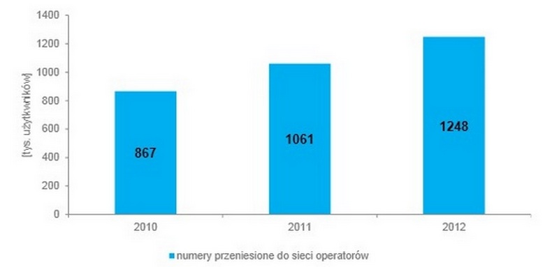W 2012 roku numer telefonu do nowego operatora przeniosło niemal 1 mln 250 tys. abonentów (dane z raportu UKE: Raport o stanie rynku telekomunikacyjnego w Polsce w 2012 roku s. 33)