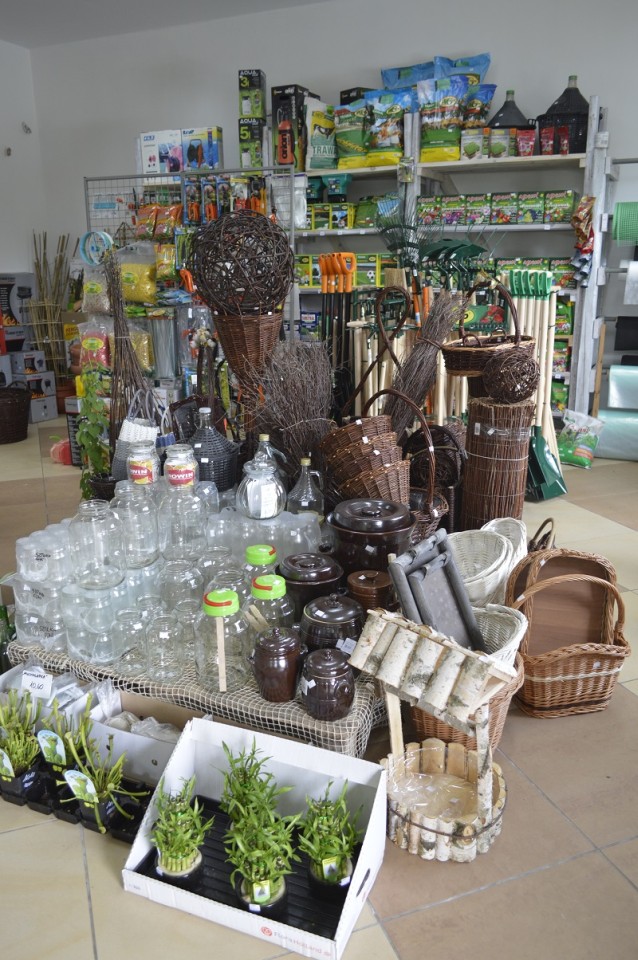 - dekoracje do domu; - doniczki; - znicze; - folie, agrowłókniny; - nawozy; - środki ochrony roślin; - narzędzia ogrodnicze,