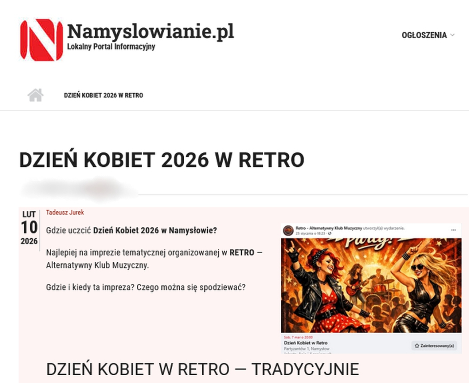 Muzyczne imprezy na Dzień Kobiet w namysłowskim Klubie Retro to już tradycja. Wielokrotnie z tej okazji odbywały się tu koncerty, m.in. Dawida Olejarza.