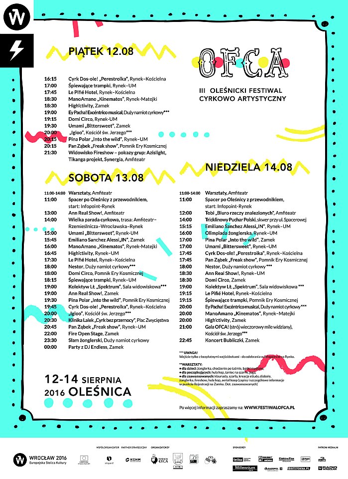 OFCA odbywa się w oddalonej o 30 km od Namysłowa - Oleśnicy. Na czas festiwalu całe miasto zmienia się w barwną scenografię dla spektakli ulicznych. Artyści, którzy występują na Festiwalu, wykorzystują swoje niezwykłe umiejętności i bezgraniczną kreatywność by opowiadać historie, budzić emocje i zachwycać. Umiejętnie wciągają publiczność do swoich pokazów, a tym samym zacierają dystans i budują wspólnotę uczestnictwa w sztuce.