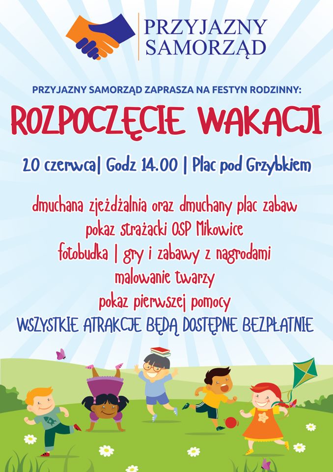 Stowarzyszenie Przyjazny Samorząd Powiatu Namysłowskiego zaprasza na festyn rodzinny, który odbędzie się z okazji zbliżającego się rozpoczęcia wakacji.