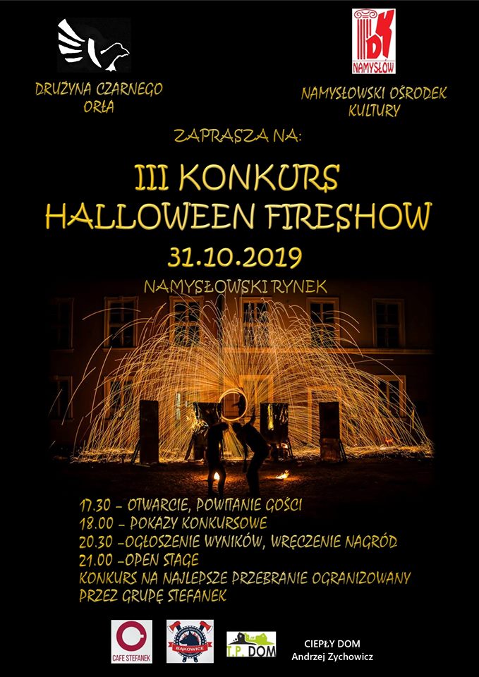 Drużyna Czarnego Orła oraz Namysłowski Ośrodek Kultury zapraszają na III Konkurs Halloween Fireshow.
