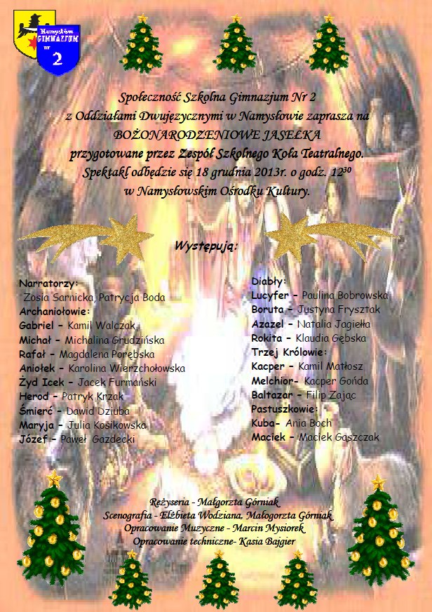 Spektakl odbędzie się 18. grudnia 2013 roku o godz. 1230 w Namysłowskim Ośrodku Kultury.