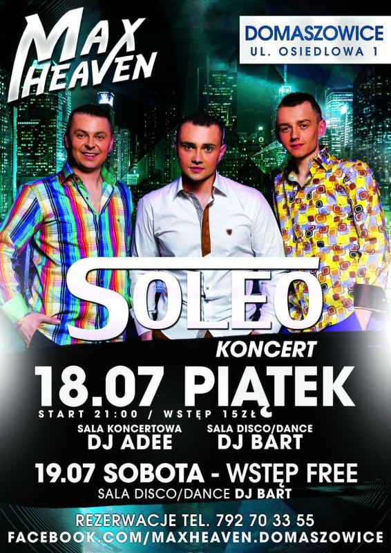 Koncert zespołu SOLEO - znanego z przebojów takich jak: "Słodko Słodka", "Ania i Hania"