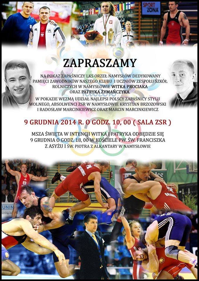 LZS Orzeł Namysłów dokona pokazu zapaśniczego dedykowany pamięci Witka Prociaka i Patryka Żymańczyka a skierowany do uczniów klas pierwszych Zespołu Szkół Rolniczych w Namysłowie. Będzie on miał miejsce 9. grudnia o godzinie 10:00 w sali gimnastycznej.