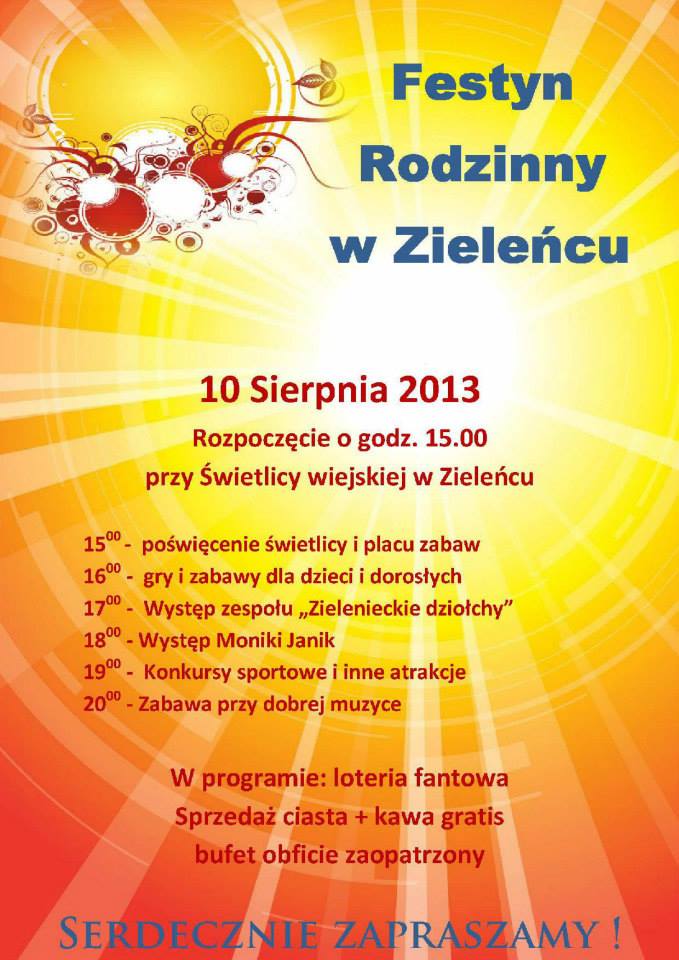 Plakat festynu rodzinnego w Zieleńcu