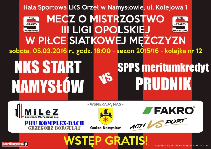 W hali przy ulicy Kolejowej 1 mecz 12. kolejki rozpocznie sie o godzinie 18:00 w sobotę 5. marca 2016 roku.