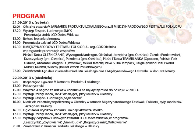 Impreza odbędzie się w dniach 21. i 22. września 2013 roku