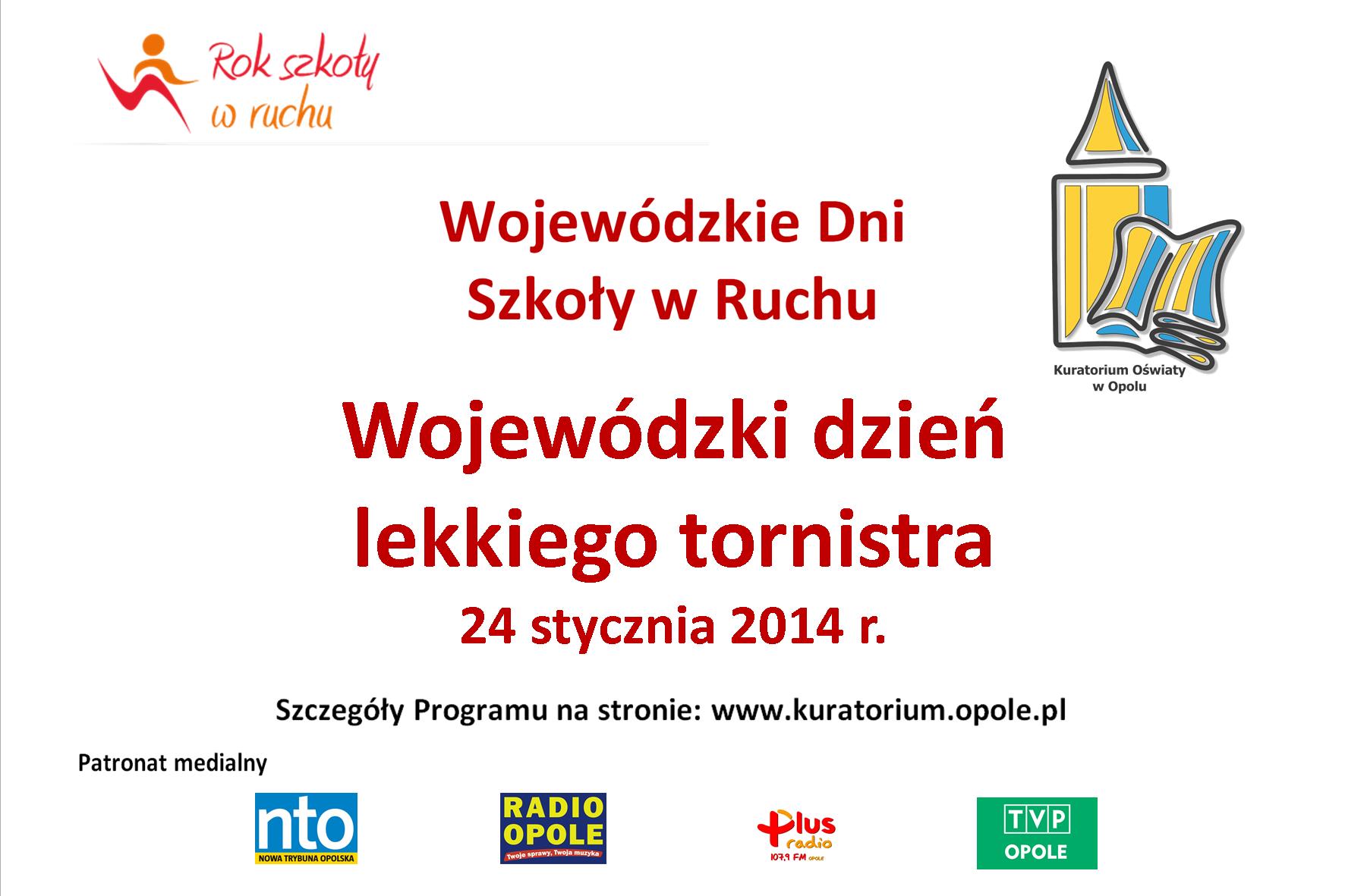 zaprasza do udziału w Wojewódzkim dniu lekkiego tornistra 24 stycznia 2014 r., realizowanym w ramach programu „Rok Szkoły w Ruchu".